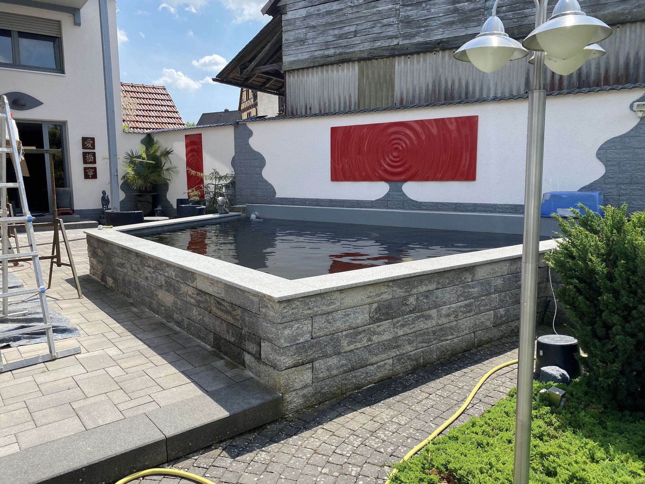 >gemauertem Teich (eignet sich zur Fischzucht)