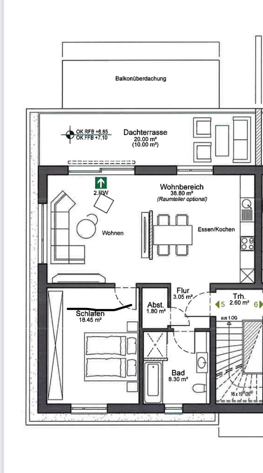 Die Immobilie verfügt über zwei Parkplätze, was in einer Stadt mit begrenzten Parkmöglichkeiten ein großer Vorteil ist. Die Lage der Wohnung ist zentral und bietet eine gute Anbindung an öffentliche Verkehrsmittel und Einkaufsmöglichkeiten. Durch den Neubauzustand und die modernen Ausstattungsmerkmale ist die Dachgeschosswohnung ein attraktives Angebot für all diejenigen, die auf der Suche nach einem komfortablen Zuhause sind.